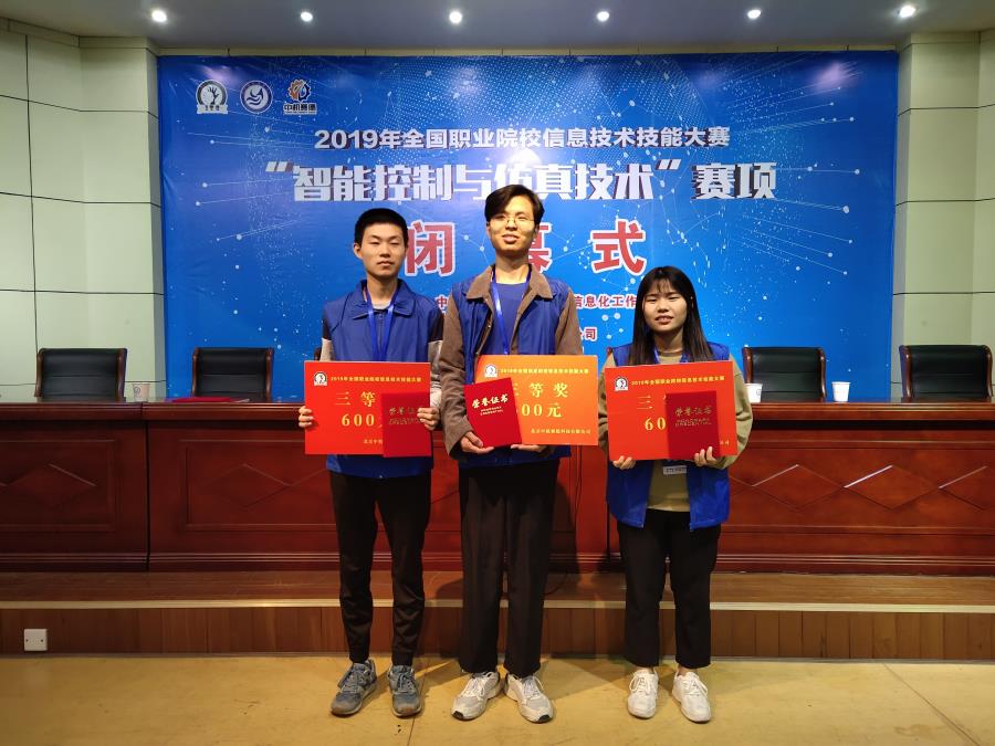 2019年10月25日-27日,在安徽池州举办的“2019年全国职业院校信息技术技能大赛智能控制与仿真技术赛项”中,由我院机械工程系教师许志敏、林志荣指导的学生朱志勇、严新财、郭艳如荣获三等奖。此次大赛由中国职业技术教育学会信息化工作委员会主办,共有来自全国40支院校代表队参赛。