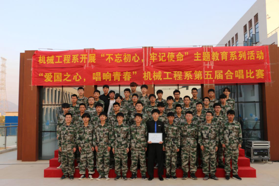 当前位置: 系部首页>最新消息11月14号下午,机械工程系在公教一北二楼平台举办“不忘初心,牢记使命”主题新生合唱比赛,本次比赛邀请到了翁歆老师,黄心闲老师,朱菡老师担任评委,机械工程系主任陆宇立,书记许志敏等多位老师作为本次比赛的嘉宾。随着主持人的热情暖场,比赛开始。