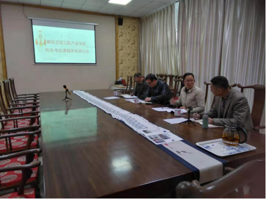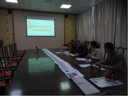 2019年12月9日,机电一体化专业主任陈菡菡与莆田卫国工匠产业学院郑振华经理、任炳新工程师及卫国特聘张伦玠教授在枫亭卫国产业学校二楼会议室召开2019年机电专业课程体系建设研讨会