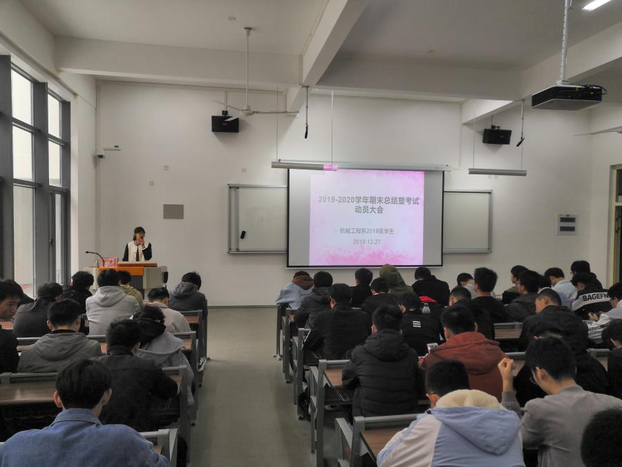 当前位置: 系部首页>最新消息2019年12月27日,机械工程学院在信息楼南104室召开了2019-2020学年上学期期末总结会议。辅导员朱菡、机械工程系219级全体学生参加了此次大会。