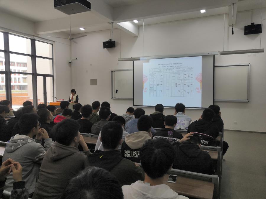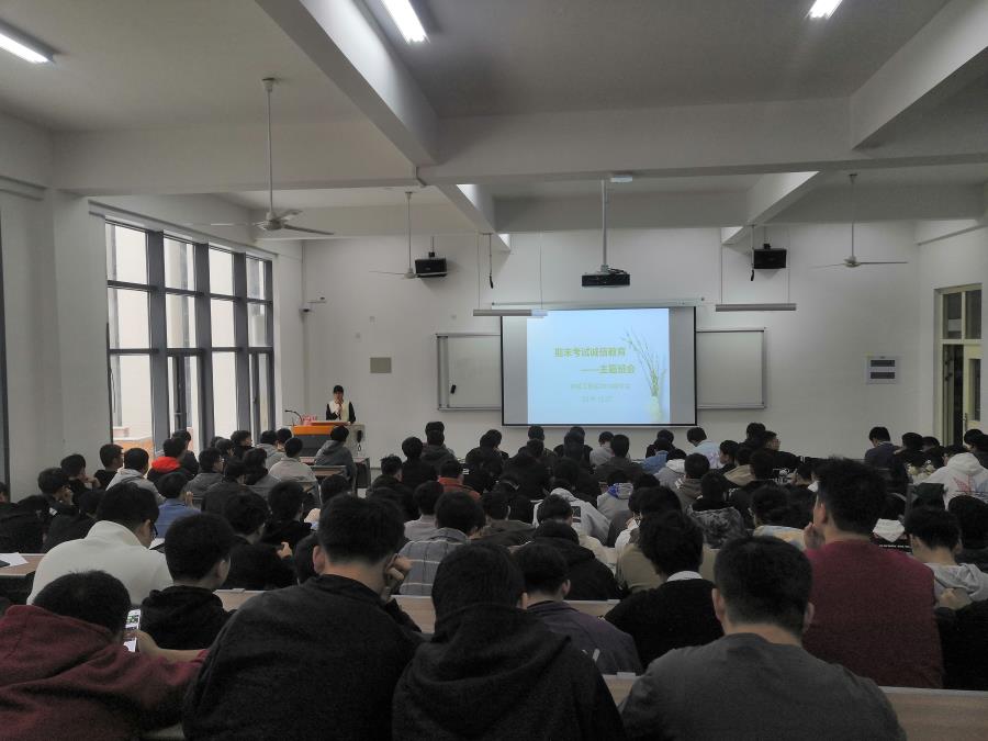 当前位置: 系部首页>最新消息为加强学院学风建设,严肃学院考风考纪,确保学院教学质量。机械工程系于2019年12月27日在信息楼南104召开了期末考试诚信教育主题班会,机械工程系19级全体学生参加了会议,会议由辅导员朱菡主持。