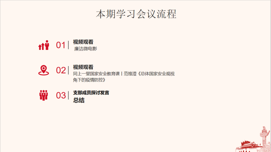 通过本次会议,支部成员学习到了廉洁品格的重要性,总书记有提到“老实做人,做老实人”,做人应当要正直清白,做事光明磊落,不贪污,不受贿,身为党员更应该要做到出淤泥而不染,濯清莲而不妖,要学会抵制诱惑,做到清正廉洁。更明白国家安全包含很多方面,是需要每一位人民共同去维护的,要从小事做起,从自身做起,在危难时刻挺身而出,把责任扛在肩上,把工作抓在手上,做好社会安全稳定工作。