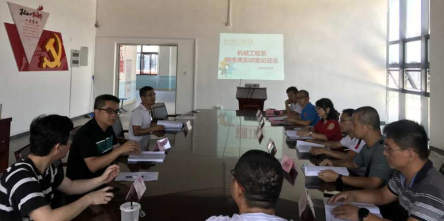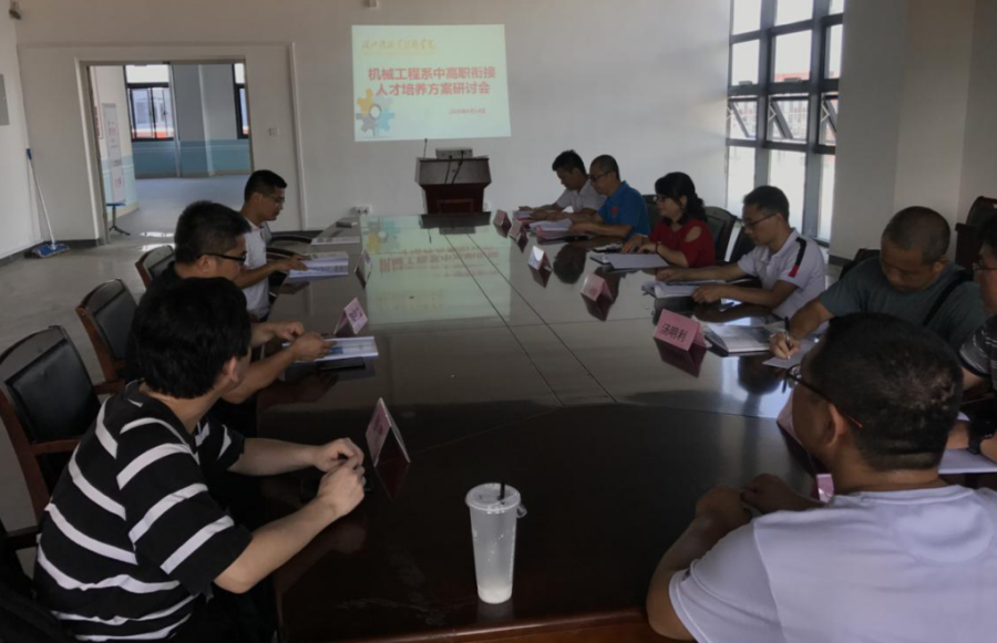 当前位置: 系部首页>最新消息为了做好中高职衔接人才培养方案制订,修订完善中高职3+2专业人才培养方案,促进职业教育培养的人才更好地适合社会需求,提高办学质量, 6月14日,我系召开中高职衔接人才培养方案研讨会、机电类实训室建设论证会,会议由机械系主任陆宇立主持。集美职业学校、集美工业学校、同安职校、厦门通达集团等各专家参会。