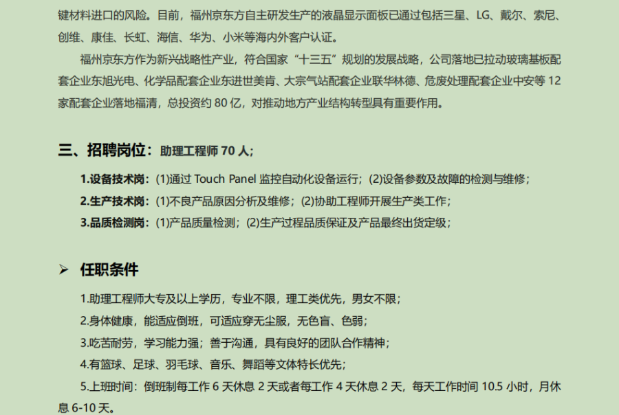 福州京东方公司2020年招聘简章