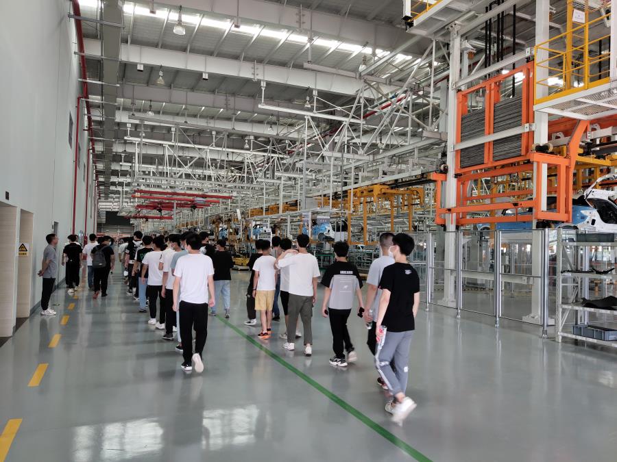 当前位置: 系部首页>最新消息为了更好的了解顶岗实习企业的岗位情况、公司环境以及人才培养方式。7月10日,刘凯辉老师带领汽修专业40余名学生到云度新能源汽车股份有限公司参观见习。
