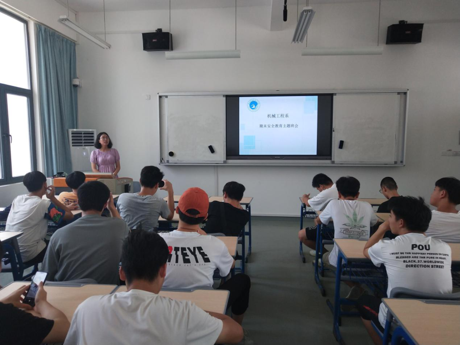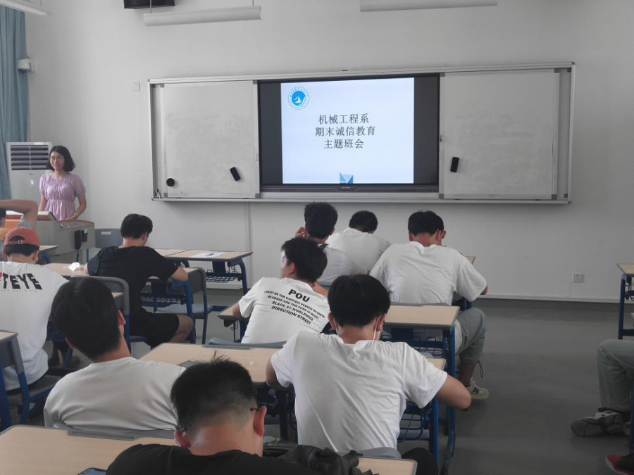 当前位置: 系部首页>最新消息诚信为本,学做真人。为营造良好的考试氛围,增强学生安全防范意识,2020年7月14日12点10分机械工程系在公教一北301开展期末考试诚信教育暨安全教育主题班会。会议由辅导员邱淑娇主持,各班学生代表参会。