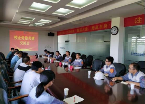 当前位置: 系部首页>最新消息为深入学习贯彻党的十九大精神,切实推进“两学一做”学习教育常态化、制度化,进一步落实新时代基层党组织党建工作的新要求,强化高校基层党组织整体功能,8月31日下午2点,我系党总支与鞍钢冷轧钢板(莆田)有限公司党支部召开校企党建共建交流会暨“回访毕业生、问计于校友”的主题党日活动,公司党支部书记张冷董事长、支部委员王绍华经理、机械系党总支许志敏、系主任陆宇立等人出席洽谈会并做交流发言,公司第三党小组组长、校友郑金喜主持会议,校企相关党员代表参加。