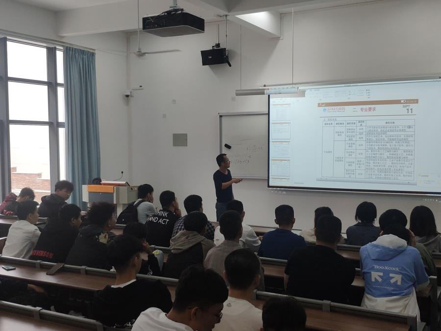 会议中,许书记详细介绍了我系的专业现状、师资力量、培养方向、课程安排、教学实践及就业前景,同时也勉励新生同学努力学习,不断进步。书记强调生活要自律、学习要刻苦。其后陆主任对各专业情况做了较为详细的介绍,同时对同学们的学习提出基本要求。本次会议主要介绍大家对自己所属的专业有全新的了解和认识,让新生们对未来的学习生涯有了初步的规划。见面会后,各专业主任对各专业学生进行单独的专业解疑并且带领学生前往实训中心参观校内实训基地。