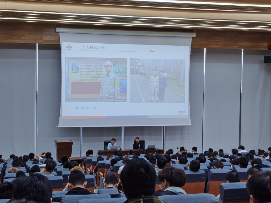 报告会上,林陈赐介绍了个人从学生到职业人的转变以及如何在基层工作中从机械点检员、机械技术管理、工艺质量工程师、点检长、主任工程师、代经理、生产分厂经营长等多个岗位锻炼成长等内容。他用诚恳平实的言辞、催人奋进的事迹告诉同学们“没有什么是应得的”,我们应该不忘初心,不计得失,在平凡平淡中坚持坚守,敢于承担,勇于奋斗,人生之路就会越走越宽。