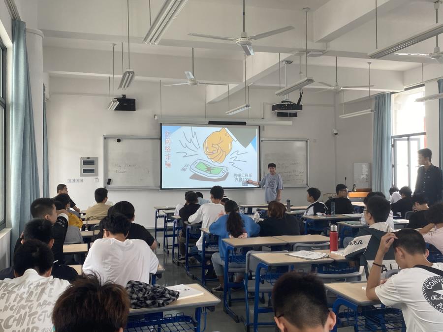 当前位置: 系部首页>最新消息随着网络发展,网络电信诈骗和手段也在与时共进,所以网络诈骗已经成为时下社会和校园的重要安全问题,提高防范意识就显得尤其必要。为了提高学生防诈骗的防范意识,杜绝网络诈骗的发生,2020年11月24日,机械工程系2020级各班于公教一北楼各自开展“防网络诈骗”安全教育主题班会,会议由辅导员曾嘉靖组织,各班班委主持。