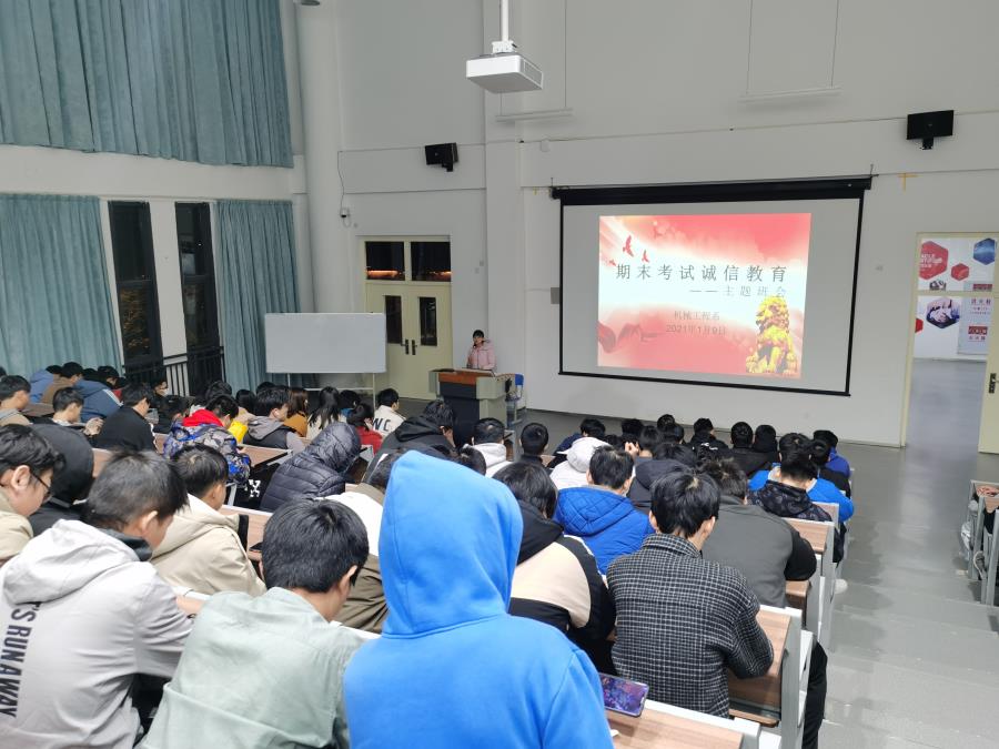 当前位置: 系部首页>最新消息为加强学院学风建设,严肃学院考风考纪,确保学院教学质量。机械工程系于2021年1月9日在信息楼南205召开了期末考试诚信教育主题班会,机械工程系19级全体学生参加了会议,会议由辅导员朱菡主持。