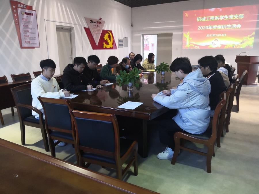 当前位置: 系部首页>最新消息为进一步深入落实十九届五中全会精神,以党建为核心引领,稳步推进系部教育工作往更好、更高质量发展,1月14日下午三点,机械工程系学生党支部在机电楼党员会议室召开了2020年度组织生活会和民主评议党员工作,学院副院长陈金毓参加了会议,会议由支部书记齐晓霞主持。