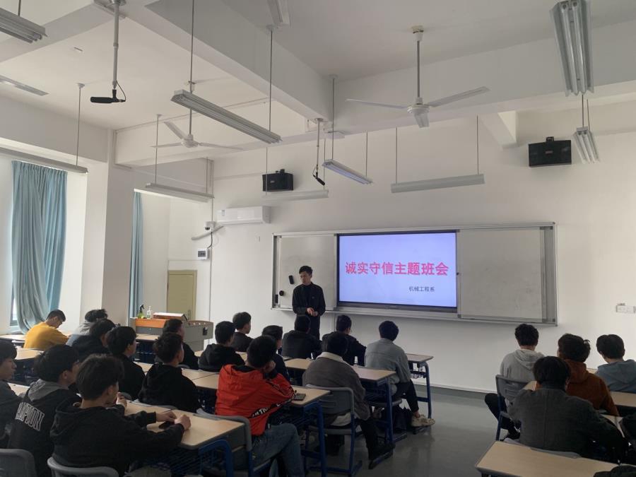 当前位置: 系部首页>最新消息对于当代大学生来讲,明礼诚信是立身之本,是走向社会的“通行证”。加强大学生诚信教育,为社会主义现代化建设输送德能兼备的优秀人才,已是大学生思想政治教育的当务之急。2021年3月16日,机械工程系开展“立诚信,修美德”诚信教育主题班会。