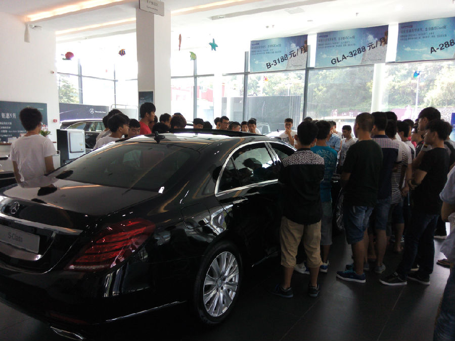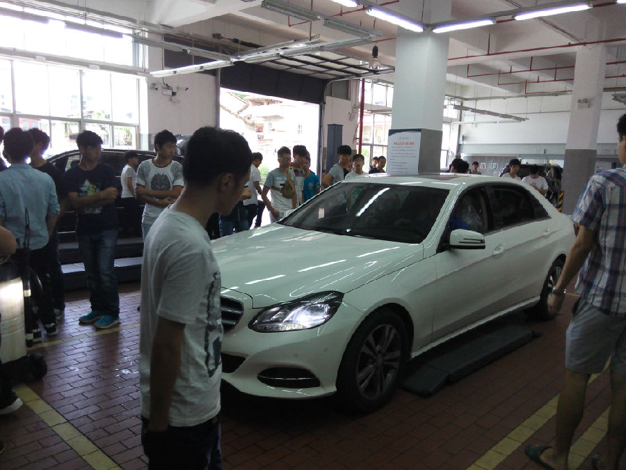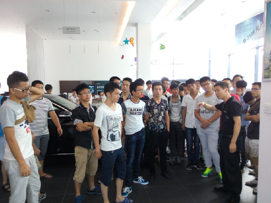在莆田奔驰4S店,同学们参观了汽车展厅,售后服务陈经理、林经理以及宋主管向同学们介绍了奔驰公司的各种车型主要包括C级、E级和S级车型以及最新技术。随后,同学们参观了奔驰车售后维修、钣金、喷漆和配件车间,期间由专业培训师详细讲解工作流程及岗位情况。最后由人事专员向同学们介绍莆田之星奔驰4s店的基本情况、公司待遇和工作环境等,为同学们以后就业选择提供了一定的参考。